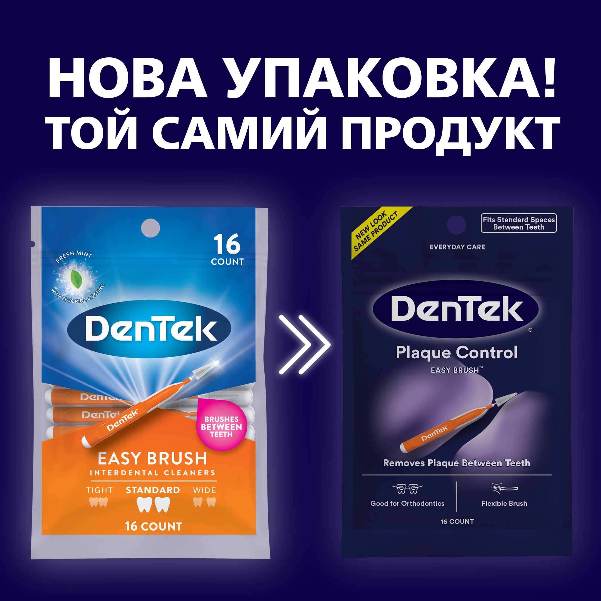 DenTek® Удобное очищение Межзубные щетки для стандартных промежутков обеспечивают легкую очистку самых труднодоступных участков в ротовой полости.