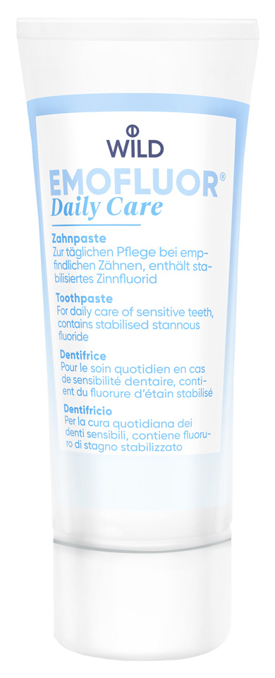 Применение фторида олова для ухода за зубами и полостью рта является чрезвычайно эффективным. Однако стабилизация этого фторидного соединения в составе продукта для гигиены полости рта без угнетения ее биологической активности является сложной задачей. Ее удалось решить благодаря стоматологическим исследованиям компании Dr. WILD, следовательно, были разработаны зубной гель (интенсивное лечение) и зубная паста (ежедневное применение), содержащие стабилизированный фторид олова.