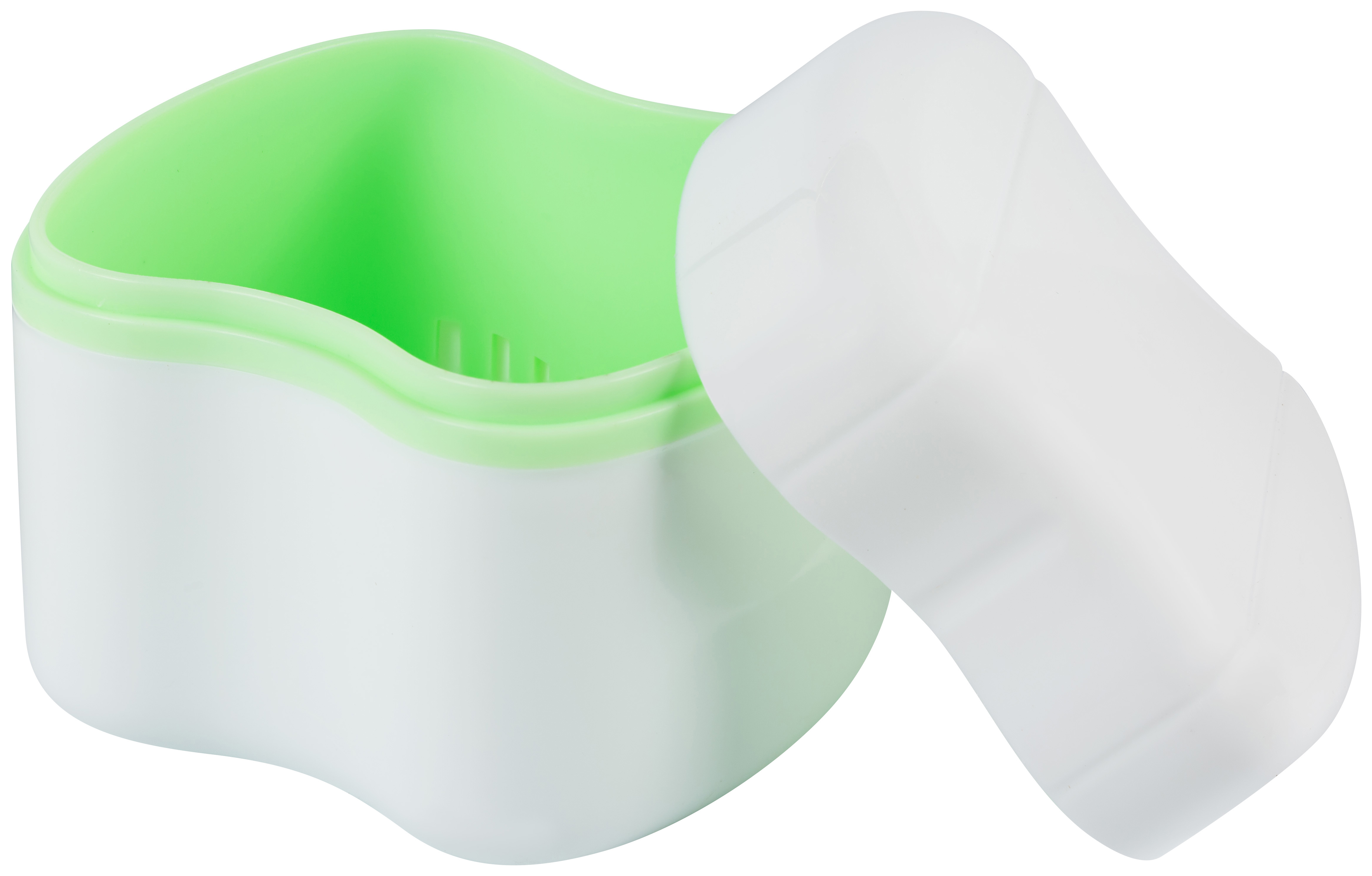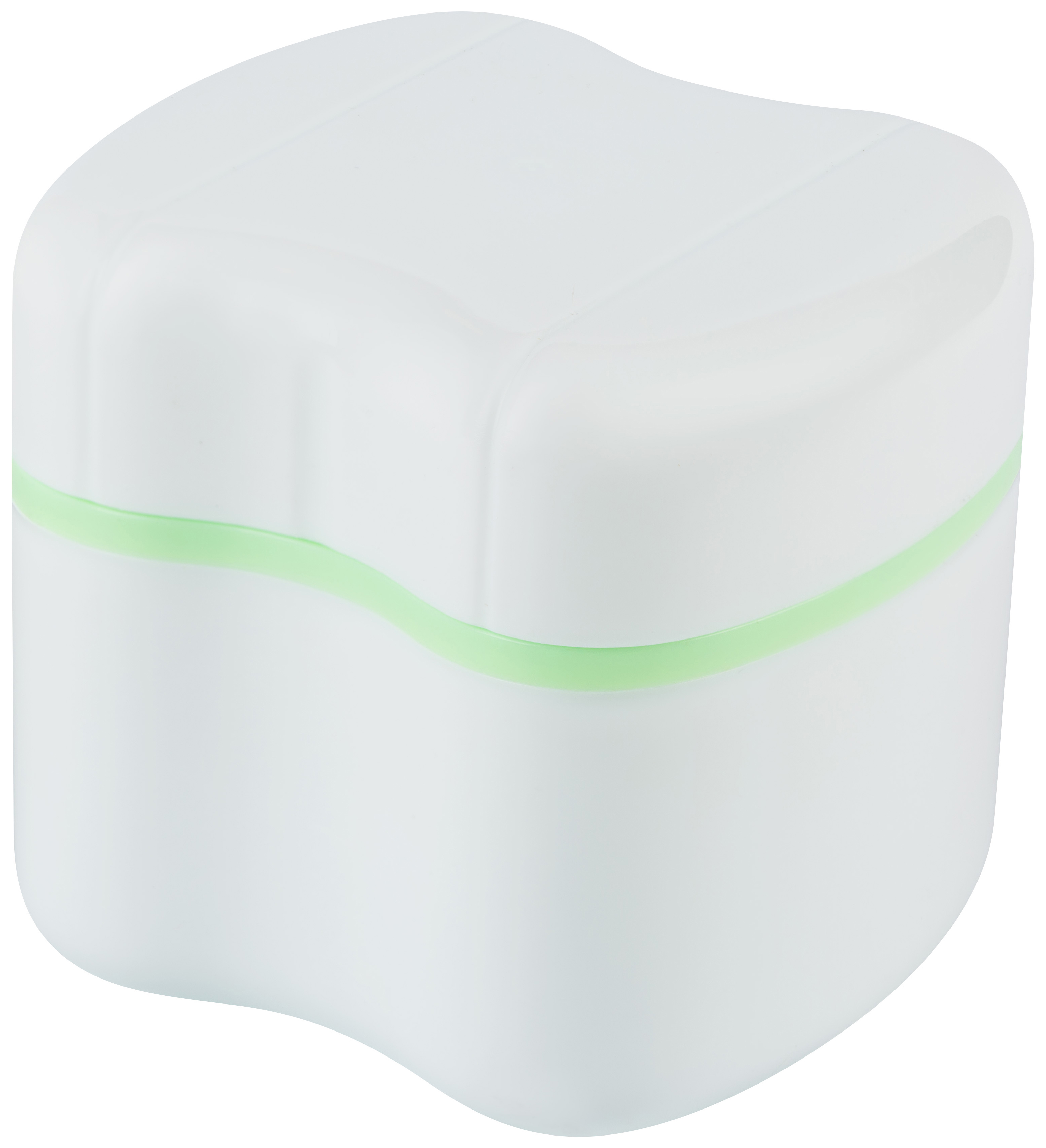 Удобный контейнер для замачивания и хранения одного полного комплекта зубных протезов