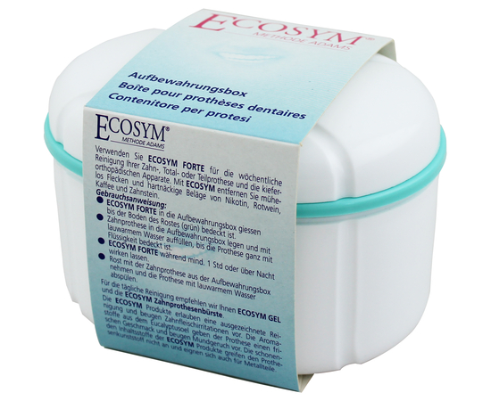 - Оставьте зубной протез в средстве ECOSYM FORTE как минимум на 1 час или на ночь