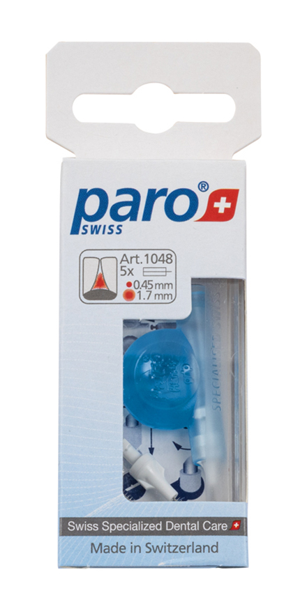 У кожній упаковці міжзубних щіток paro® isola F знаходиться зручний тримач paro® handy grip F та захисний ковпачок, який захищає щітку при перевезенні та полегшує встановлення нових щіток на тримач.