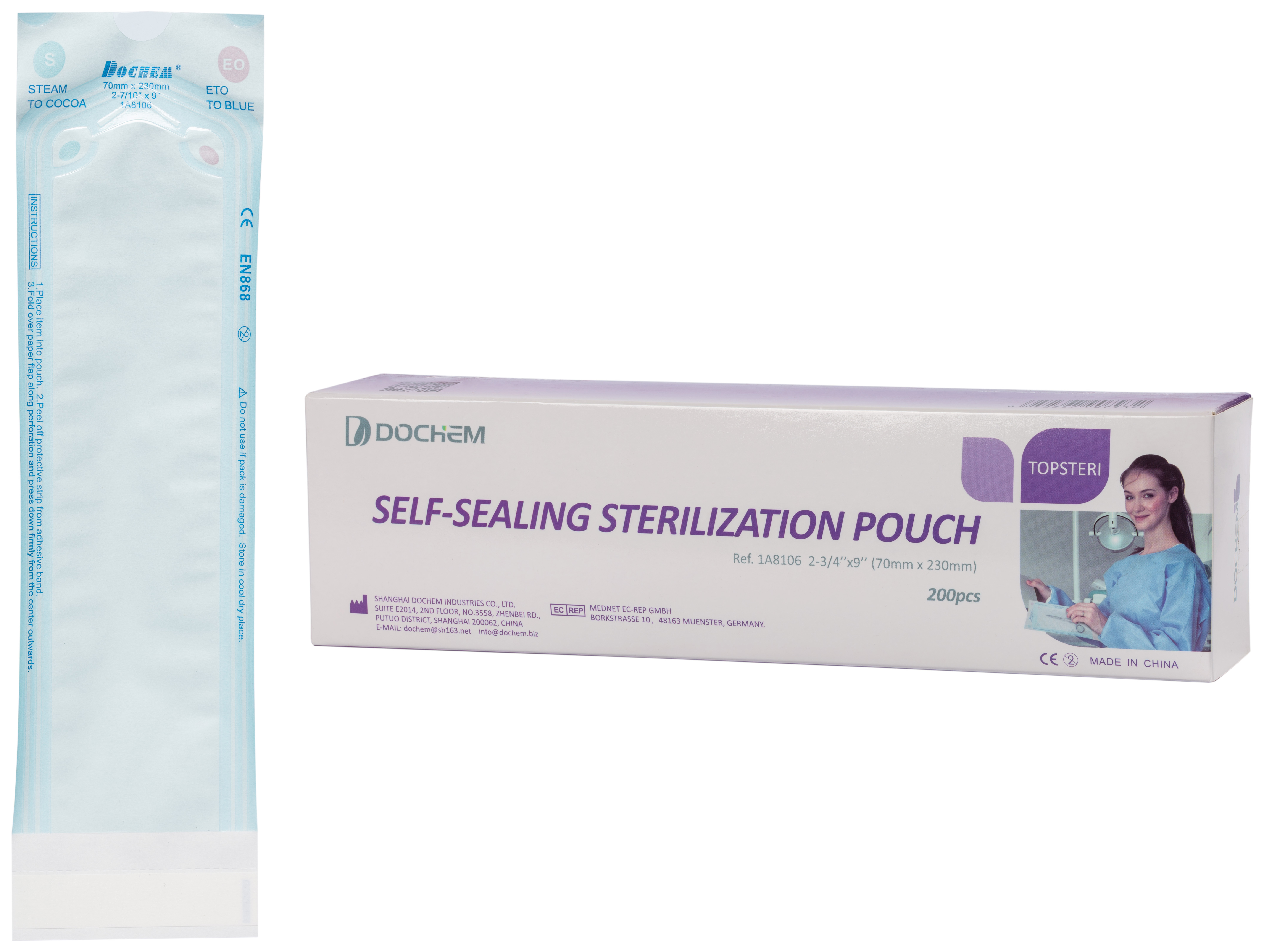 Dochem TOPSTERI Самоклеючі стерилізаційні пакети, 70 x 230 мм, 200 шт.